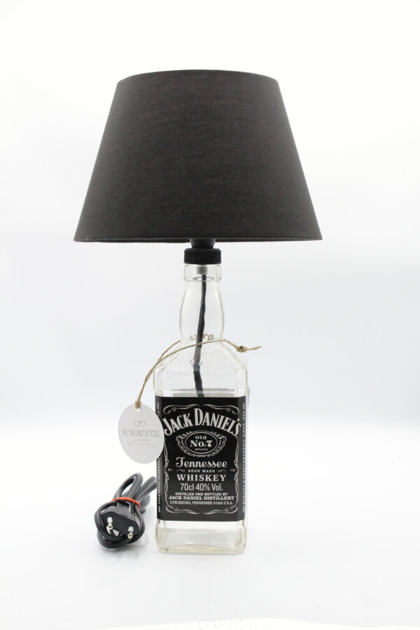 Abat-jour da interno, realizzato con la base costituita da una bottiglia riciclata di Jack Daniel’s Whiskey 70 cl